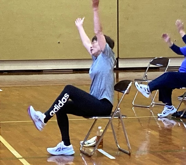 イスを使って音楽に合わせて楽しく身体を動かしましょう