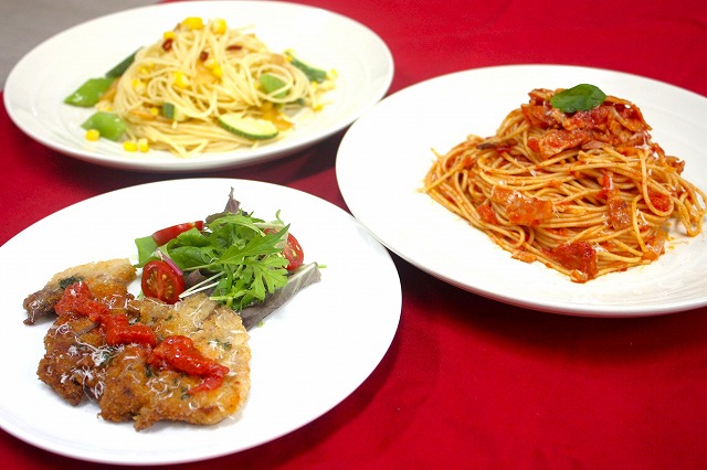 トマトソース、アマトリチャーナ、ペペロンチーノ、ミラノ風カツレツ