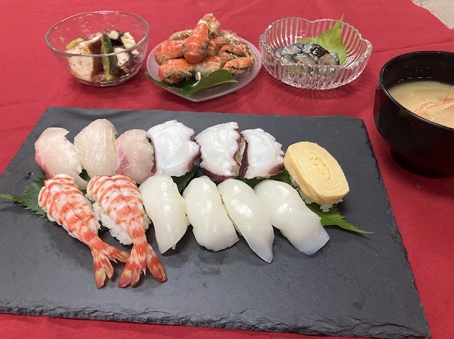 地魚を使った握り寿司 紋甲イカ、エビ、カンパチなど