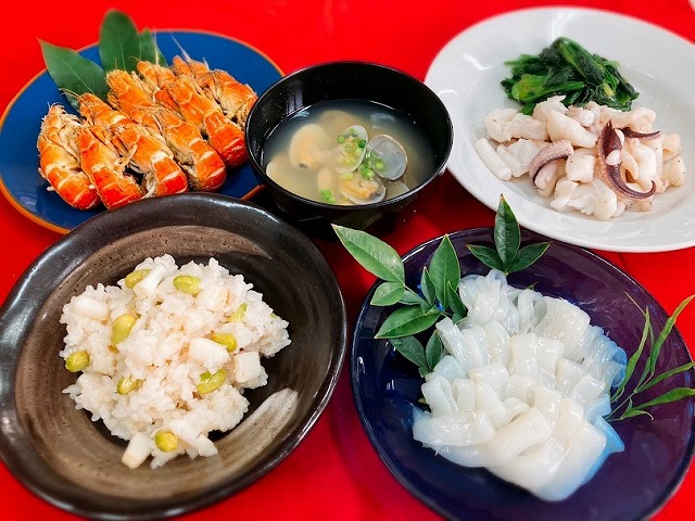刺身、炊き込みご飯、炒め物、アサリ汁等