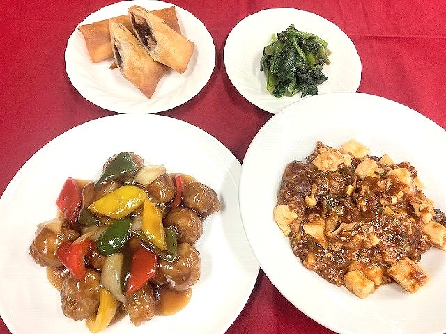 酢豚、麻婆豆腐、バナナ春巻きなど4品