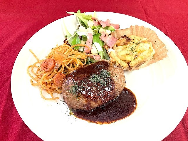 煮込みハンバーグ、ナポリタン、マカロニグラタンなど4品
