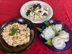 ・エビ、シャクの天ぷら ・コノシロの酢漬け ・タコキムチ ・タコ飯 等