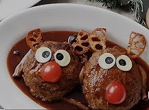 内容:トナカイさんの煮込みハンバーグ、マッシュポテトのツリー、クリスマスカップケーキ